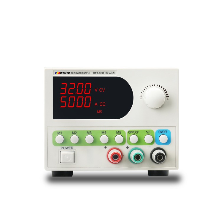Practical high-efficiency adjustable DC regulated power supply with anti-misoperation design and 5-group memory recall.
